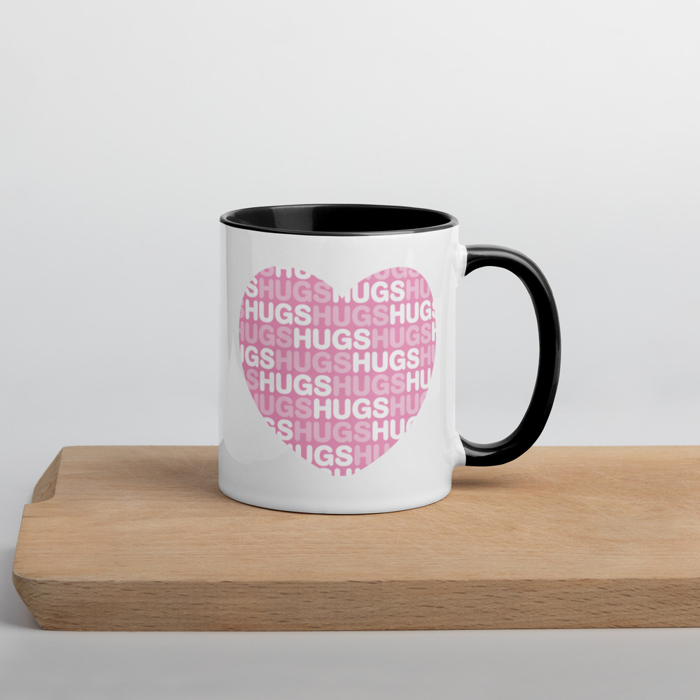 Hugs In A Heart Mug with Colour Inside